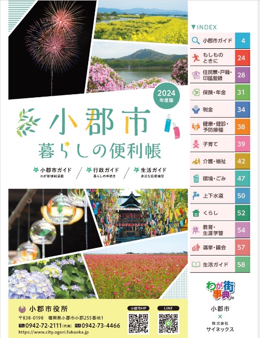 市民の暮らしに役立つ地域情報や行政情報などをまとめた冊子「小郡市暮らしの便利帳」を令和6年5月に改訂して発行しました。